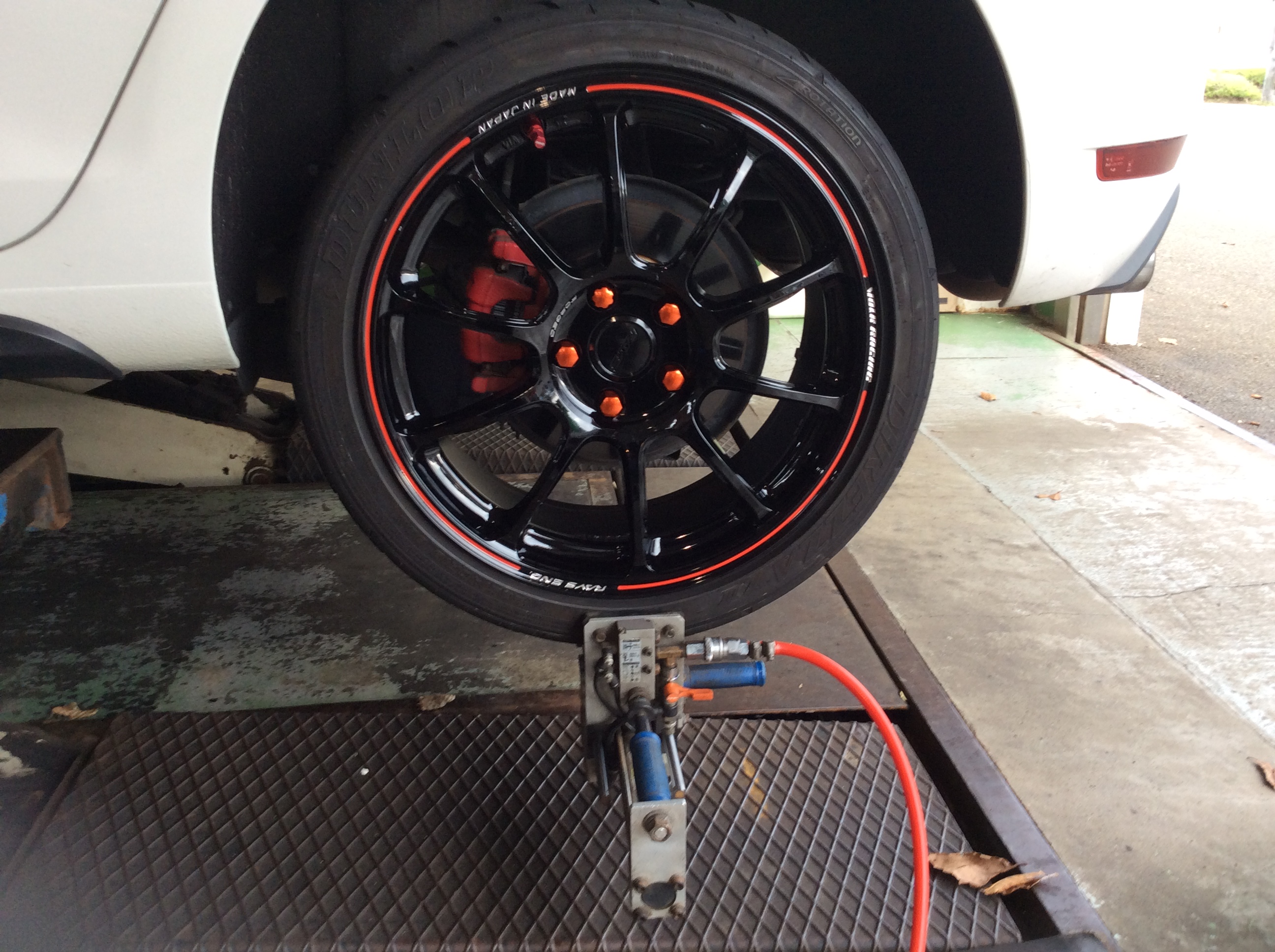 ブラックとレッドの組み合わせのこのレイズボルクレーシングホイールにクルーズのカラーナットはオプションカラーのビビットオレンジ🍊!!!