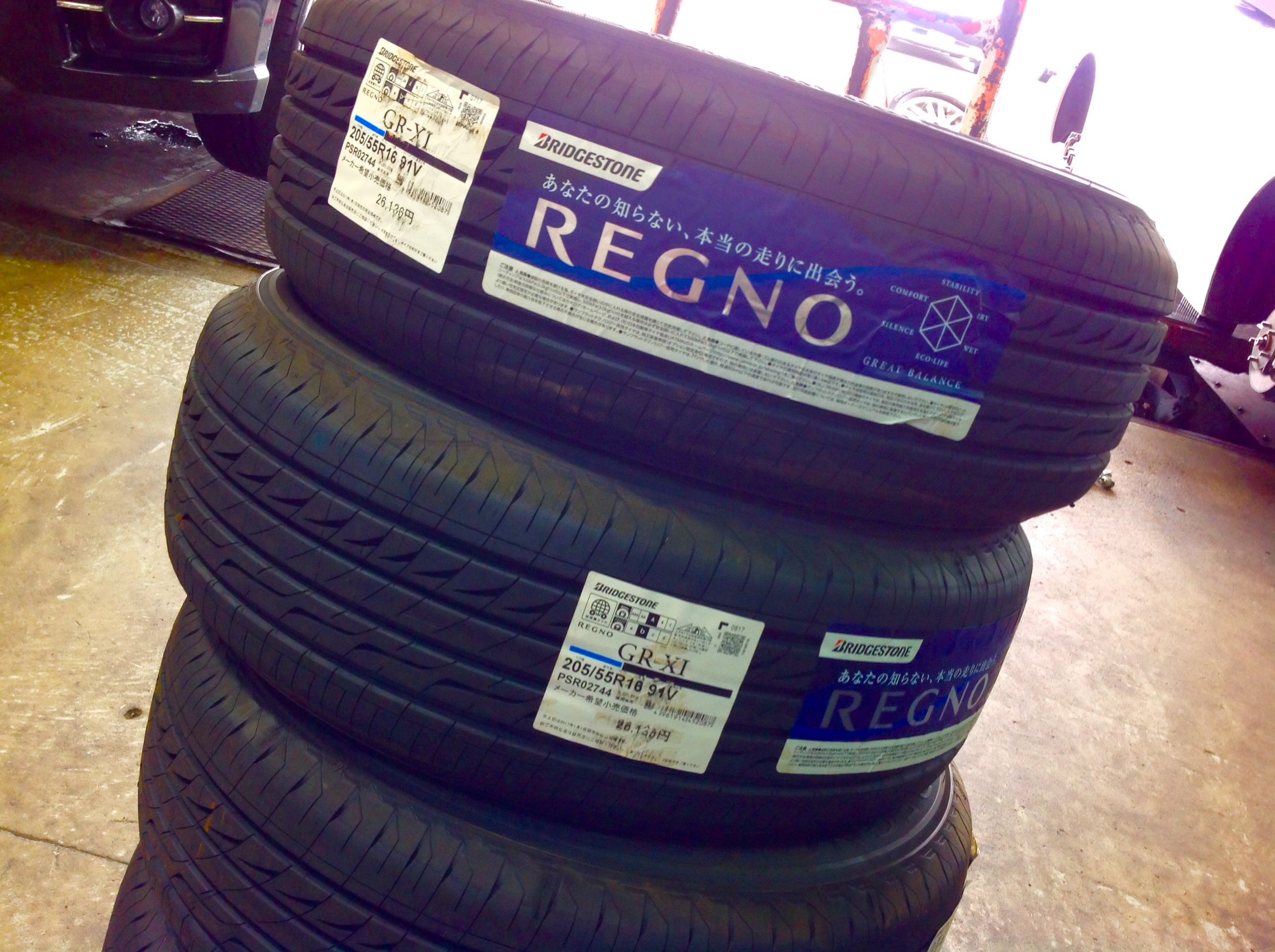 タイヤの交換時期でブリヂストンタイヤの中での最上級タイヤREGNOをご購入頂きましたお客様も多数おりまして、ブリヂストンの今までの経験と技術がギュッと詰まっている商品で、性能もREGNO、ライフもREGNOです笑