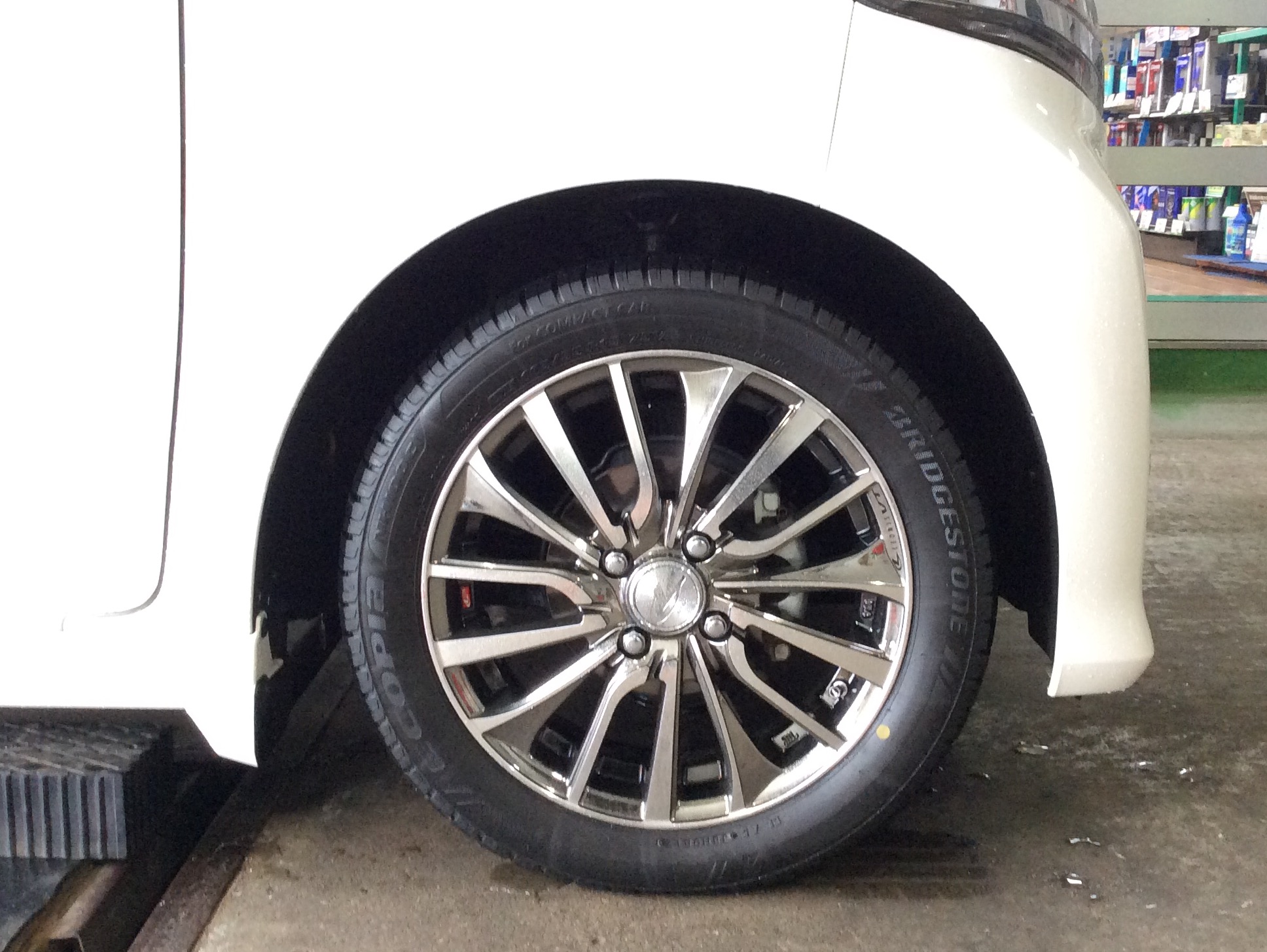 先日レオニスVT BMCMC 15×4.5j+45とNH100 165/55R15のタイヤホイールをご購入頂きましたS子様のお車N-WGNにダウンサスを取り付けました!!!