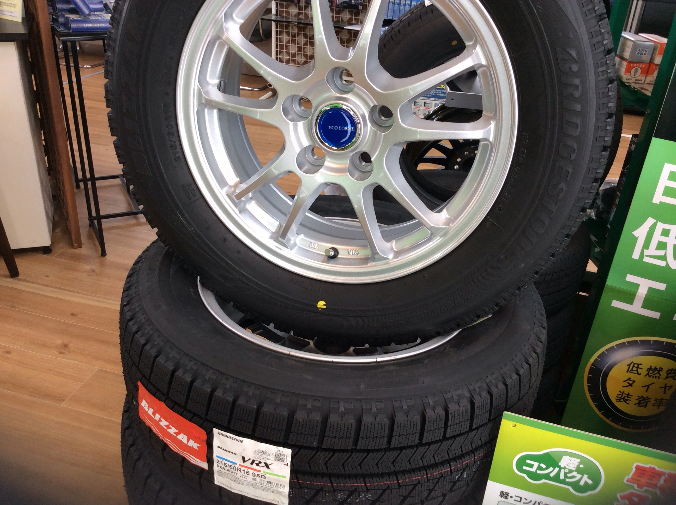 まだ8月なのですが、早くも店内には冬タイヤのセット品が!!